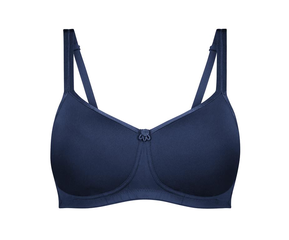 Su acabado ancho en la parte inferior garantiza un mejor soporte en la zona baja de los senos. Las copas de espuma moldeada son lisas y no poseen costuras. Compuesto en tejido transpirable COOLMAX® , absorbe la humedad en las copas.