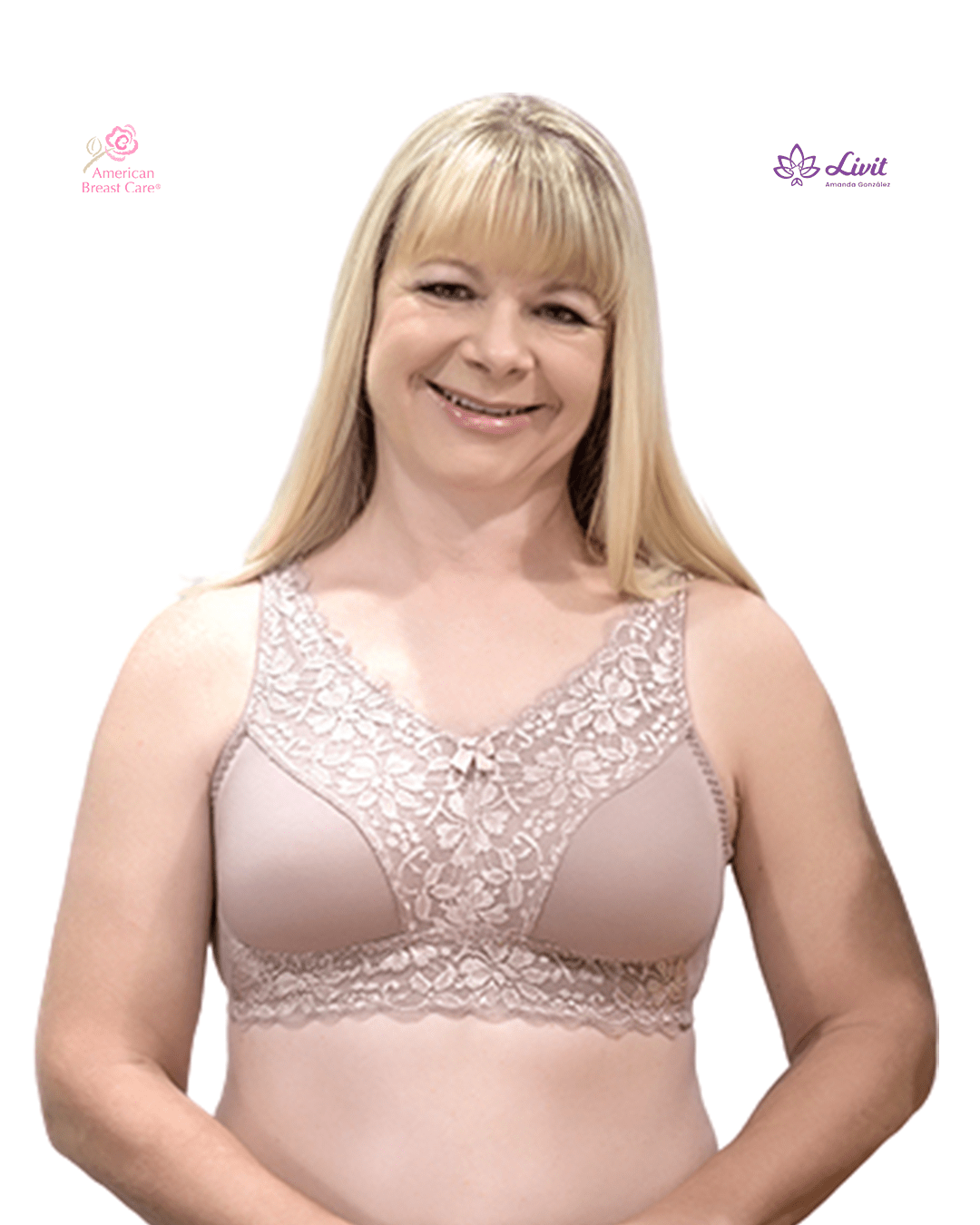 Las copas del sujetador cuentan con un hermoso diseño de encaje que puede funcionar como camisola. Presenta copas suaves y cosidas con un perfil de superficial a promedio.