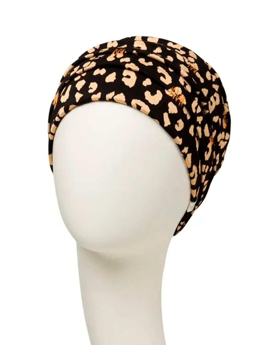 Nuestro Ruby Skye es un turbante fácil de llevar. Este turbante suave y clásico es perfecto para quienes buscan una solución de turbante sencilla, pero a quienes también les gustan los pequeños detalles adicionales. Ruby Skye está confeccionada en suave tela de viscosa negra y decorada con manchas de leopardo de color camel. Como contraste con el color negro, hemos añadido pequeñas puntadas en zigzag de color naranja que dan forma y mantienen unidas las pequeñas capas alrededor del turbante. El suave forro Caretech® Bamboo añade comodidad y ligereza para que te sientas elegante, cómodo y seguro cuando lleves el modelo. -Cuidados y materiales: Instrucciones de lavado: lavar a mano con agua fría, no usar lejía ni secar en secadora, secar en plano, se puede planchar/cocer al vapor a baja temperatura, se puede limpiar en seco. -Talla única -Composición: 56% Viscosa, 42% Poliéster, 2% Elastano