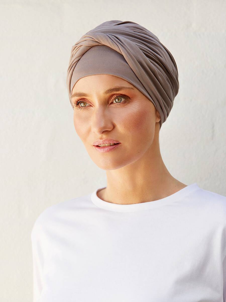 Un turbante de la serie Shakti. Fabricado en bambú, que le aporta al turbante las propiedades perfectas.